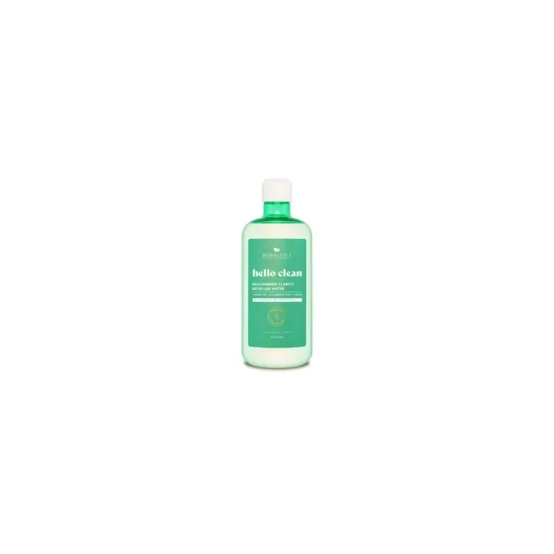 Purifiez et équilibrez votre peau en un seul geste avec la Biobalance Hello Clean Niacinamide Eau Micellaire Clarté 500ml. Spécialement formulée pour les peaux mixtes, grasses, sujettes aux imperfections ou aux brillances, cette eau micellaire innovante offre un nettoyage doux mais efficace sans nécessiter de rinçage. Ses micelles agissent comme des aimants pour capturer et éliminer le maquillage, l'excès de sébum et les impuretés, tandis que la Niacinamide (Vitamine B3) contribue à réguler la production de sébum et à réduire l'apparence des pores dilatés. Résultat : votre peau est parfaitement nette, fraîche, matifiée et visiblement plus claire, sans sensation de tiraillement. C'est le soin quotidien idéal pour une peau équilibrée, apaisée et un teint unifié.