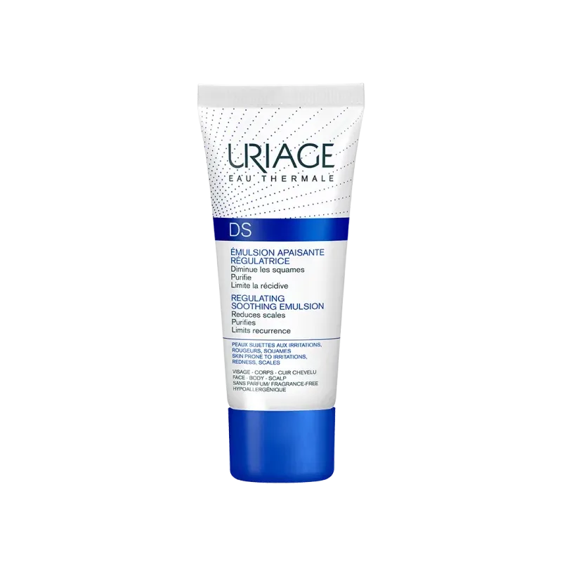 L'URIAGE DS Émulsion Soin Régulateur 40ml est un soin léger et non gras spécifiquement formulé pour les peaux sujettes aux rougeurs, squames et irritations, en particulier celles affectées par la dermatite séborrhéique sur le visage (ailes du nez, sourcils, lisière du cuir chevelu, menton) et le corps. Elle agit pour apaiser, purifier et rééquilibrer la peau.