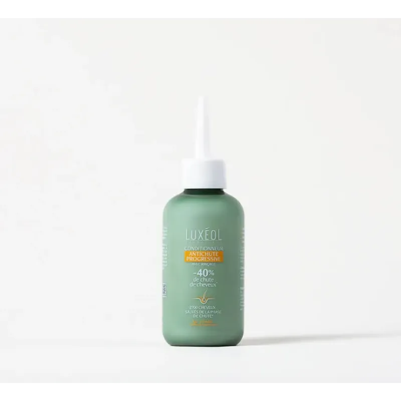 Un conditionneur avec rinçage antichute progressive Luxéol 150ml qui démêle, renforce les cheveux et cible la chute progressive, favorisant une chevelure plus dense et résistante.