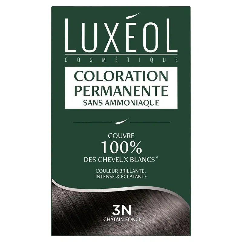 Une coloration permanente Luxéol 3N Châtain Foncé qui offre une couleur intense et profonde, une couverture totale des cheveux blancs, et un soin protecteur pour des cheveux nourris, brillants et éclatants de santé.