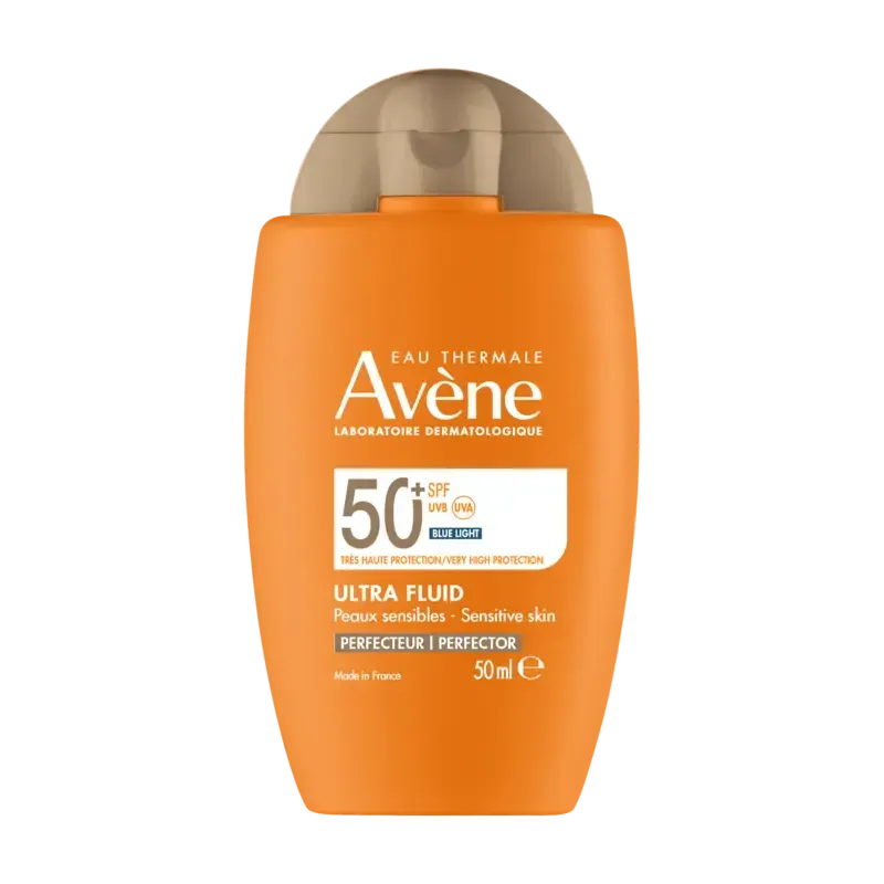 L'Avène Ultra Fluid Perfecteur Teinté SPF50+ 50ml est une très haute protection solaire visage pour peaux sensibles normales à mixtes. Grâce au filtre TriAsorB™, il protège des UV et de la lumière bleue, tout en unifiant et sublimant le teint avec une teinte universelle. Sa texture ultra-fluide pénètre rapidement, laissant un fini invisible et mat, idéal comme base de maquillage.