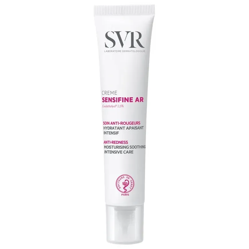 La SVR Sensifine AR Crème 40ml est un soin intensif apaisant conçu pour les peaux sensibles, réactives et sujettes aux rougeurs, notamment celles à tendance couperosique. Sa formule innovante agit comme un "thermostat" cutané, offrant un effet "coupe-feu" immédiat pour calmer les sensations d'échauffement et réduire durablement les rougeurs.