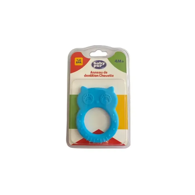 Cet anneau de dentition BABY PUR Chouette (4M+) en silicone souple et sûr est conçu pour soulager les gencives de bébé avec une touche ludique. Son design de chouette adorable et ses textures variées offrent un massage efficace, le rendant facile à saisir et à nettoyer pour un confort garanti lors des poussées dentaires.