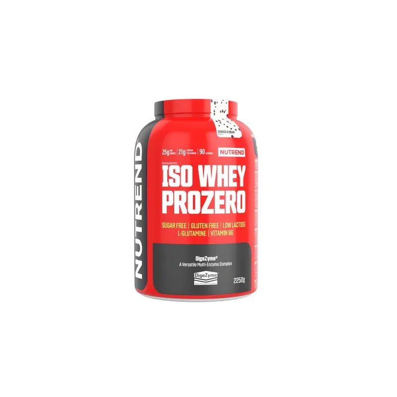 Le NUTREND ISO WHEY PROZERO Cookies Cream 2250g est un complément alimentaire de haute qualité à base d'isolat de protéines de lactosérum (WPI), conçu pour les athlètes sérieux et les personnes ayant des besoins diététiques spécifiques. Ce produit se distingue par son absence de sucre (quantité négligeable) et sa teneur quasi nulle en lactose, ce qui en fait un excellent choix pour les personnes intolérantes au lactose ou celles qui suivent des régimes stricts à faible teneur en glucides.