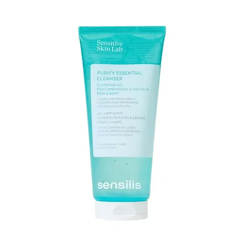 Le SENSILIS PURIFY Essential Cleanser est un gel nettoyant quotidien formulé pour les peaux mixtes, grasses et à tendance acnéique, y compris les plus sensibles. Sa formule douce et sans savon respecte l'équilibre naturel de la peau tout en éliminant efficacement les impuretés, l'excès de sébum et les résidus de maquillage. Enrichi en zinc, qui régule le sébum, et en extraits de plantes purifiantes, ce nettoyant aide à matifier le teint, à resserrer les pores et à prévenir l'apparition des imperfections. Sa texture gel se transforme en une mousse délicate au contact de l'eau, laissant la peau propre, fraîche et sans sensation de tiraillement.