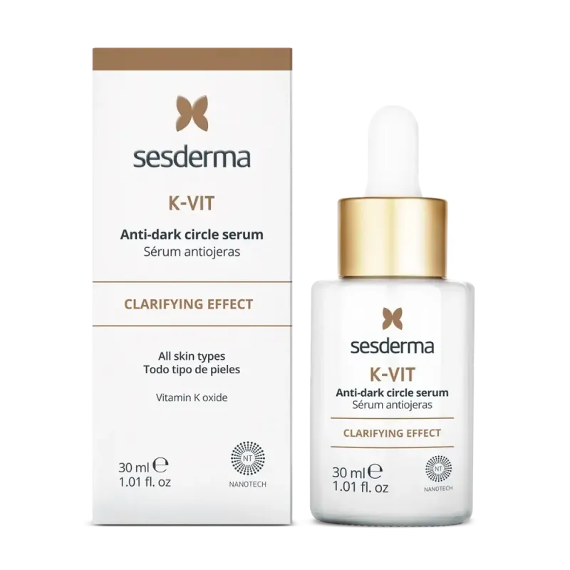 Le SESDERMA K-VIT Sérum Anticernes est un soin intensif spécialement formulé pour le contour des yeux afin de traiter et de prévenir les cernes foncés. Ce sérum se distingue par sa formule innovante à base de vitamine K oxyde encapsulée dans des nanosomes, une technologie qui assure une pénétration optimale et une efficacité maximale. En agissant directement sur l'origine vasculaire des cernes, il renforce les capillaires, réduit la pigmentation et éclaircit visiblement le regard. Sa texture légère est rapidement absorbée, ce qui le rend idéal pour une utilisation quotidienne et une application facile sous le maquillage.