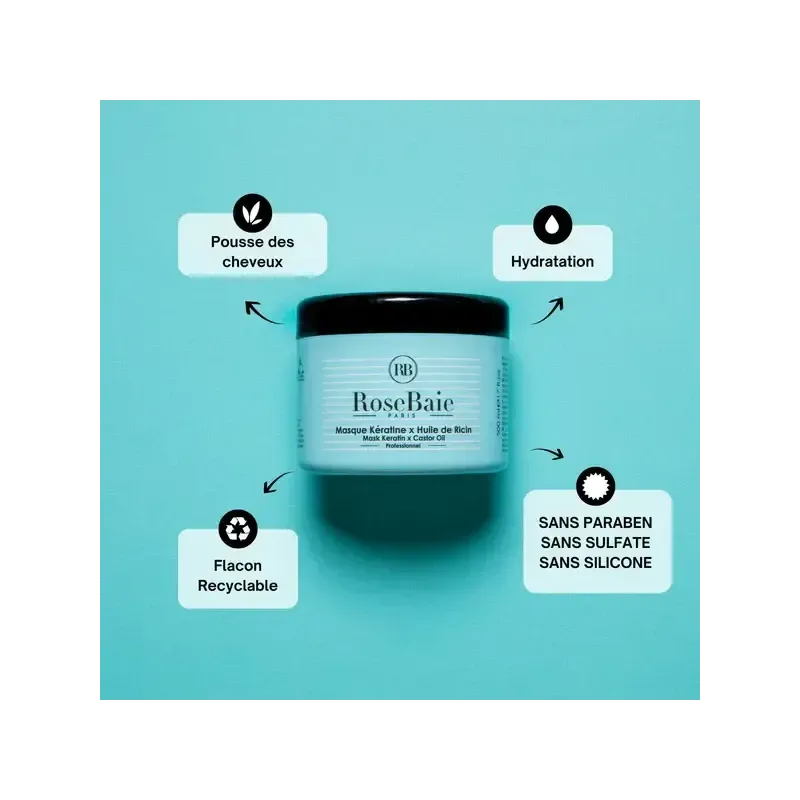 Un masque capillaire fortifiant à l'huile de ricin et à la kératine. Il répare en profondeur, nourrit et renforce les cheveux secs et cassants, tout en stimulant leur pousse. Ce soin intense redonne force, douceur et brillance à la chevelure.