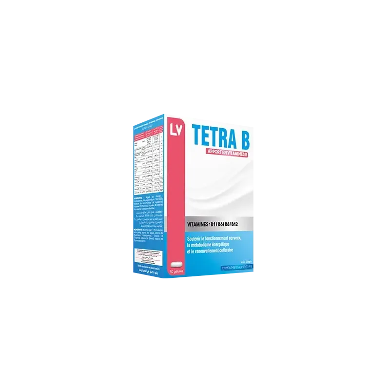 VITAL TETRA B 30 CAPSULES est un complément alimentaire formulé pour apporter une combinaison complète de vitamines du groupe B. Ce complexe inclut les vitamines B1, B2, B3, B5, B6, B8, B9 et B12, essentielles au bon fonctionnement de l'organisme. Ces vitamines jouent un rôle crucial dans la production d'énergie, le soutien du système nerveux et la réduction de la fatigue. Ce produit est idéal pour les personnes en période de stress, de surmenage, ou qui ressentent un manque de vitalité.