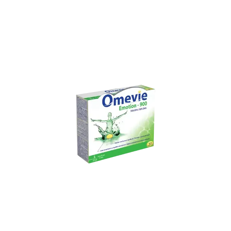 VITAL OMEVIE ÉMOTION 900 est un complément alimentaire sous forme de capsules, spécialement formulé pour soutenir l'équilibre émotionnel et le bien-être mental. Sa formule est basée sur une forte concentration d'acides gras Oméga-3, notamment l'EPA (Acide Eicosapentaénoïque) et le DHA (Acide Docosahexaénoïque), qui sont reconnus pour leur rôle crucial dans le fonctionnement du cerveau et le maintien d'une bonne humeur. Il est un allié précieux pour les personnes qui se sentent nerveuses, stressées ou qui subissent des changements d'humeur.
