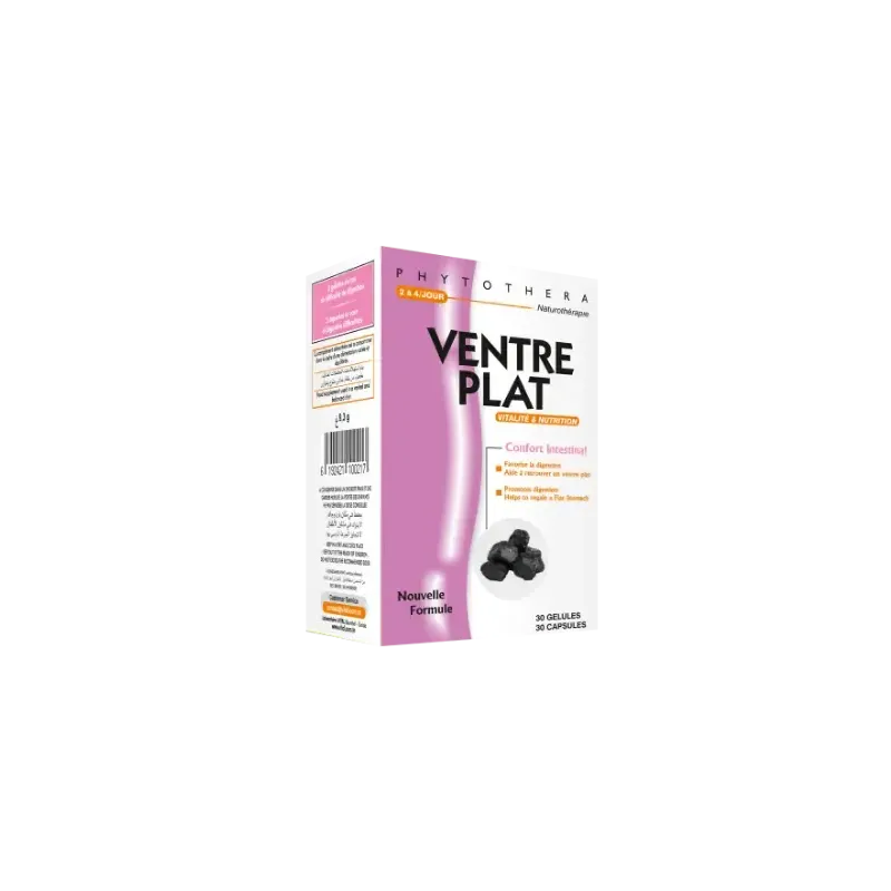 VITAL PHYTOTHERA VENTRE PLAT 30 GÉLULES est un complément alimentaire formulé pour réduire les ballonnements et les gaz, et favoriser un confort digestif général. Sa formule naturelle est une synergie d'extraits de plantes (Fenouil, Charbon Végétal Activé) qui agissent sur les causes des inconforts digestifs, tout en aidant à maintenir un ventre plus plat et une silhouette affinée. Ce produit est un allié précieux pour les personnes qui souffrent de sensations de lourdeur, de ventre gonflé ou de digestion difficile.
