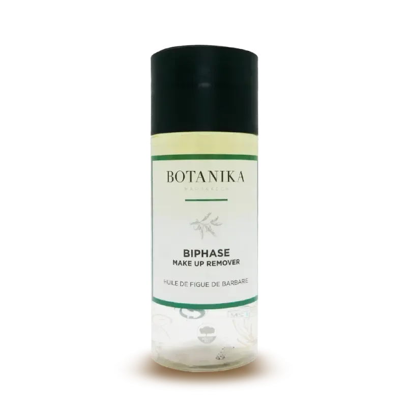 Démaquillant biphasé 150ml (à 97% d'origine naturelle) de BOTANIKA MARRAKECH, formulé à base d'huile d'argan, il démaquille efficacement (y compris waterproof), nettoie et tonifie la peau sans laisser de résidu gras.