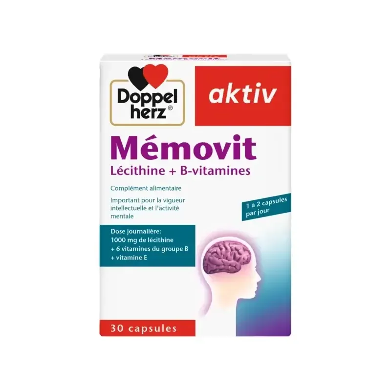 AKTIV MEMOVIT est un complément alimentaire conçu pour soutenir la mémoire, la concentration et les fonctions cognitives. Sa formule unique combine de la Lécithine de soja avec des vitamines du groupe B (B1, B2, B6, B12), ainsi que des vitamines C et E. La lécithine est une source de choline, un précurseur de l'acétylcholine, un neurotransmetteur essentiel pour la mémoire. Les vitamines B agissent en synergie pour soutenir le bon fonctionnement du système nerveux et réduire la fatigue intellectuelle. Ce complément est idéal pour les étudiants en période d'examen, les professionnels en situation de stress ou les personnes âgées souhaitant maintenir leurs capacités cognitives.