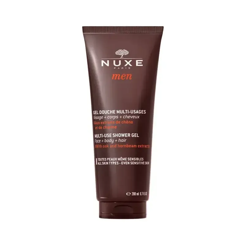Le Gel Douche Multi-usages NUXE MEN est un incontournable pour les hommes modernes qui recherchent l'efficacité et la simplicité. Sa texture gel se transforme en une mousse généreuse et facile à rincer, qui nettoie en profondeur tout en apportant une sensation de propreté. Le cœur de sa formule réside dans l'alliance d'extraits naturels qui purifient et apaisent. Il est idéal après une séance de sport ou le matin pour bien démarrer la journée. Son parfum, à la fois sophistiqué et naturel, est un vrai plus qui transforme le moment de la douche en un rituel de bien-être.
