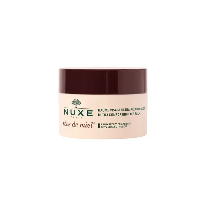 Le Baume Visage Ultra-Réconfortant NUXE RÊVE DE MIEL est un véritable cocon de douceur pour les peaux en détresse. Le miel d'acacia, ingrédient phare, est reconnu pour ses propriétés réparatrices et apaisantes. Il est associé à des huiles végétales précieuses comme l'huile de tournesol et l'huile de karité, qui apportent des acides gras essentiels pour une nutrition optimale. Ce soin est idéal pour un usage quotidien, mais aussi en cure d'urgence pour les peaux très sèches et fragilisées, notamment en hiver. Son parfum gourmand aux notes de miel, de mimosa et de vanille rend l'application un moment de bien-être sensoriel.