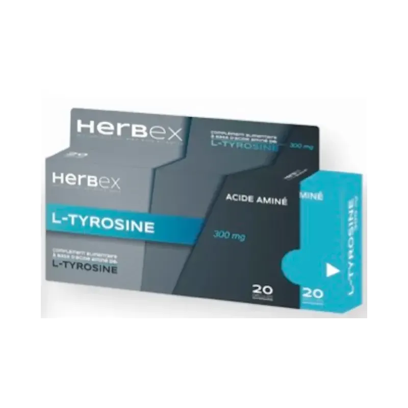 HERBEX L-TYROSINE 300 MG est un complément alimentaire conçu pour soutenir les fonctions cognitives, réduire le stress et améliorer le bien-être émotionnel. La L-Tyrosine est un acide aminé essentiel qui joue un rôle crucial dans la production de neurotransmetteurs.
