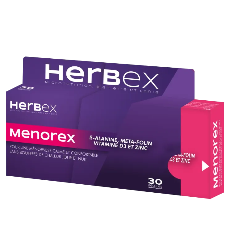 HERBEX MENOREX est un complément alimentaire conçu pour aider à soulager les symptômes de la ménopause et du syndrome prémenstruel (SPM). Sa formule unique, à base d'extraits de plantes, est spécialement conçue pour apporter confort et bien-être aux femmes.