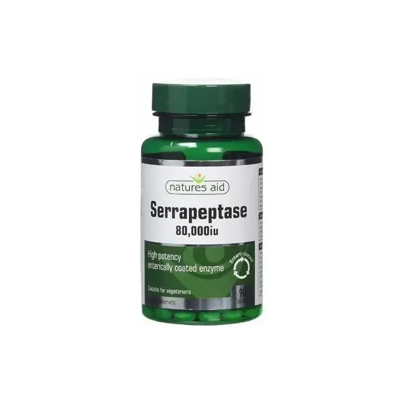 NATURES AID SERRAPEPTASE est un complément alimentaire enzymatique conçu pour aider à réduire les inflammations, les gonflements et à soutenir la fonction articulaire et respiratoire. La Serrapeptase est une enzyme protéolytique, c'est-à-dire qu'elle a la capacité de digérer certaines protéines.