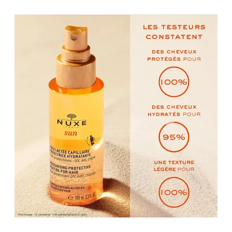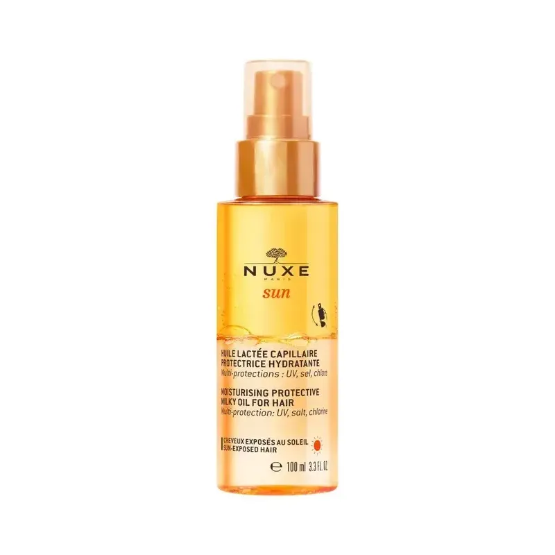 Cette huile lactée capillaire est un soin protecteur conçu pour les cheveux exposés au soleil, au sel et au chlore. Sa formule légère et sans alcool, enrichie en filtres UV et en extraits de Jacinthe d'Eau, protège la fibre capillaire du dessèchement et des agressions estivales. Sa texture lactée se vaporise comme un voile invisible sur la chevelure, la nourrissant sans l'alourdir ni la graisser. Elle prévient la perte d'éclat et la déshydratation des cheveux, et son parfum envoûtant aux notes de fleur de tiaré et de vanille prolonge le plaisir des vacances. C'est le geste essentiel pour des cheveux doux, soyeux et protégés tout l'été.