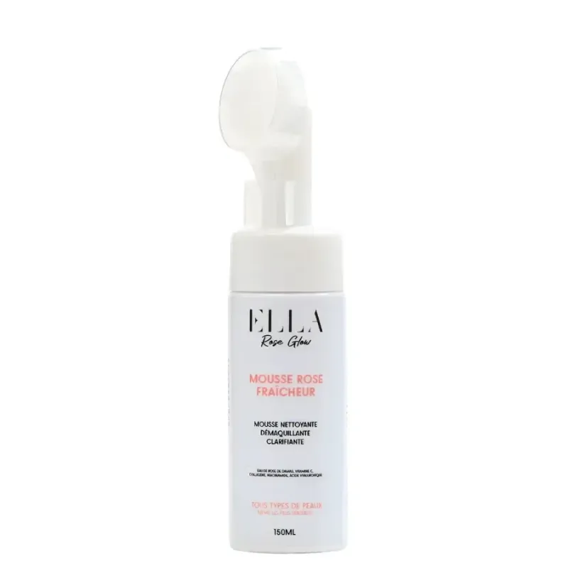 La Mousse Rose Fraîcheur d'ELLA est un soin nettoyant et démaquillant multi-actions pour le visage, présenté sous forme de mousse aérienne dans un flacon de 150 ml, souvent doté d'une brosse intégrée pour une application optimisée. Elle est conçue pour purifier la peau en profondeur tout en respectant son équilibre naturel. Sa formule, enrichie en eau florale de rose et en actifs puissants (par exemple, Acide Hyaluronique, Vitamine C et Collagène selon certaines sources), permet d'éliminer efficacement les impuretés, l'excès de sébum et les traces de maquillage. Elle ne se contente pas de nettoyer ; elle apporte également de l'éclat et une sensation de fraîcheur durable, laissant la peau douce, apaisée et délicatement parfumée à la rose.