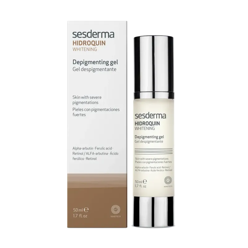 Le SESDERMA HIDROQUIN BLANCHISSANT GEL 50ML est un gel dépigmentant intensif conçu pour la prévention et le traitement des taches cutanées très fortes (taches solaires, mélasma, taches de vieillesse, décoloration post-acné, etc.). Contrairement à d'autres traitements, sa formule repose sur une combinaison synergique d'actifs dépigmentants encapsulés dans des nanosomes (nanotechnologie). Cette encapsulation permet aux ingrédients actifs de pénétrer les couches profondes de la peau, d'être libérés progressivement et d'agir directement sur l'origine de la pigmentation. Le gel vise à réduire la pigmentation existante, à bloquer la production future de mélanine et à exfolier légèrement la peau pour un teint plus lisse et homogène.