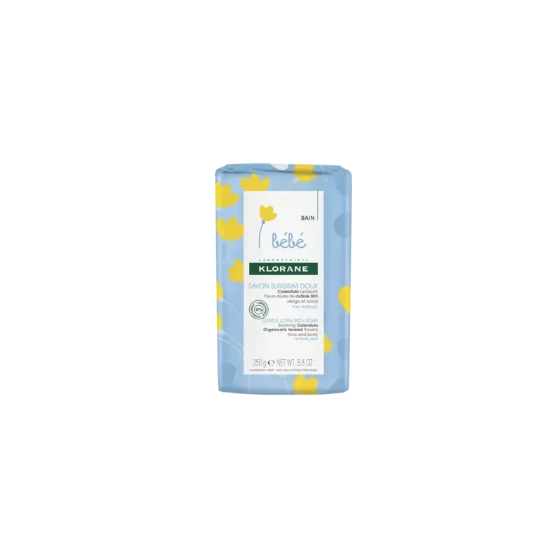Le Savon Surgras Klorane Bébé est un pain de toilette de 250 grammes conçu pour la toilette quotidienne du visage et du corps des nourrissons et des bébés, y compris dès la naissance. Sa formule surgrasse est essentielle pour prévenir le dessèchement cutané, particulièrement dans les zones où la peau est fine et sensible. Enrichi en Extrait de Calendula (souvent issu de culture BIO), ce savon nettoie la peau avec une extrême douceur, sans l'irriter ni altérer son film hydrolipidique protecteur. Il contient des agents nourrissants qui protègent la peau des agressions extérieures et lui apportent confort. Il se transforme en une mousse délicate au contact de l'eau et laisse sur la peau un parfum tendre et relaxant.