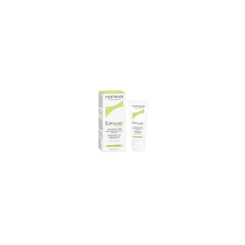 Soin correcteur matifiant NOREVA EXFOLIAC ACNOMEGA 200 qui désobstrue les pores et traite les imperfections modérées à sévères de la peau.