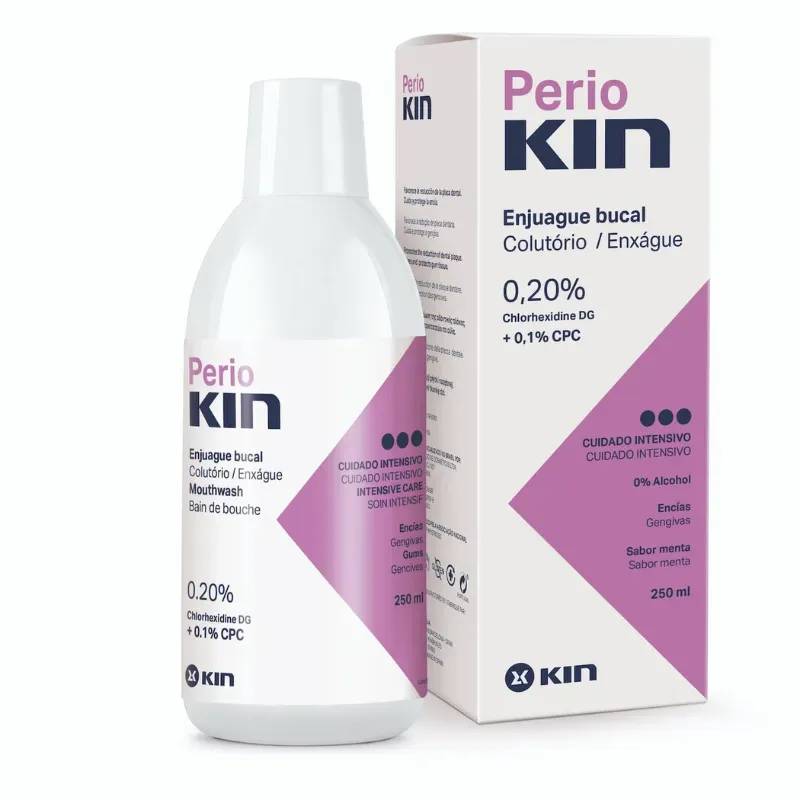 Le bain de bouche KIN PerioKIN est un soin bucco-dentaire intensif et puissant, spécifiquement formulé pour le traitement des affections parodontales (gingivite avancée, parodontite) et pour les soins post-chirurgicaux. Il est destiné à une utilisation de courte durée sur avis professionnel.