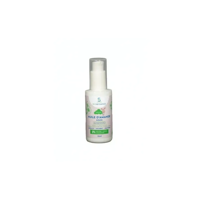 L'Huile d'Amande Douce Bionessance est une huile végétale 100% naturelle et souvent certifiée biologique, réputée pour ses propriétés adoucissantes, protectrices et nourrissantes. Elle est particulièrement appréciée pour les soins de la peau fragile, notamment celle des bébés et des femmes enceintes.