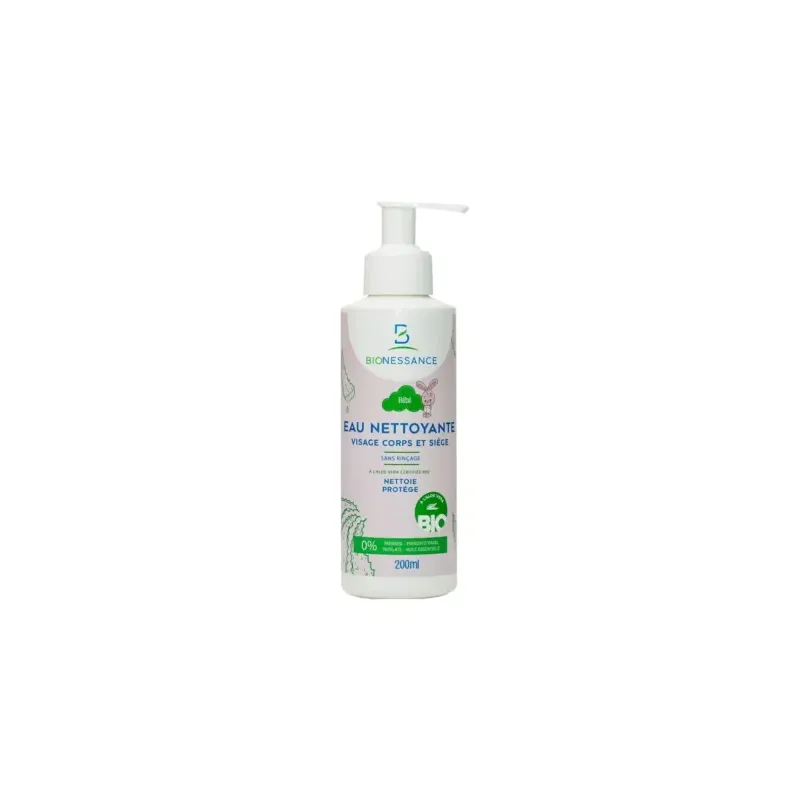 Le Gel Lavant Doux Cheveux et Corps Bionessance 200ml est un soin 2-en-1 spécifiquement formulé pour nettoyer en douceur l'épiderme et le cuir chevelu fragiles du bébé, tout en prévenant le dessèchement cutané.