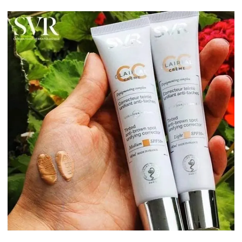 La SVR Clairial CC Crème Light SPF50 est un soin multifonction qui hydrate, unifie le teint, corrige les taches pigmentaires et offre une très haute protection solaire.
