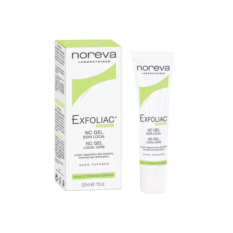 Gel fluide NOREVA EXFOLIAC NC, à base de Niacinamide, idéal pour le traitement ciblé et l'élimination rapide des boutons localisés sur les peaux à imperfections.