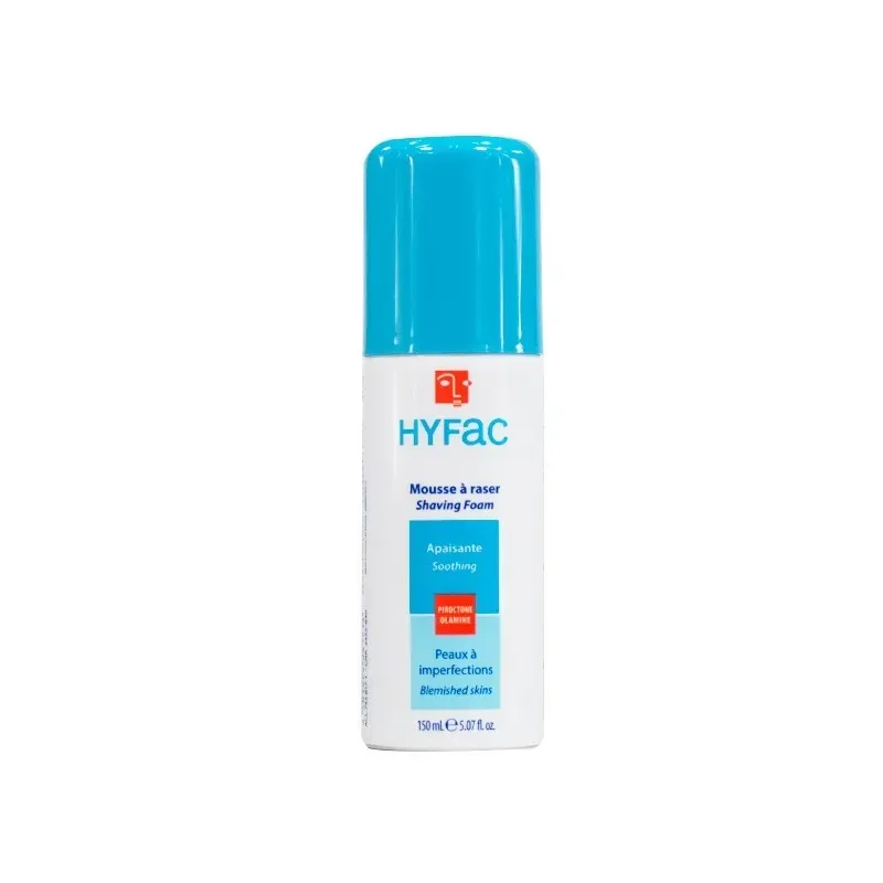 Mousse à Raser HYFAC 150ml, soin dermatologique pour peaux sensibles et à imperfections. Elle assure un rasage doux et confortable, combat le feu du rasoir et limite la prolifération bactérienne pour prévenir l'apparition de boutons.