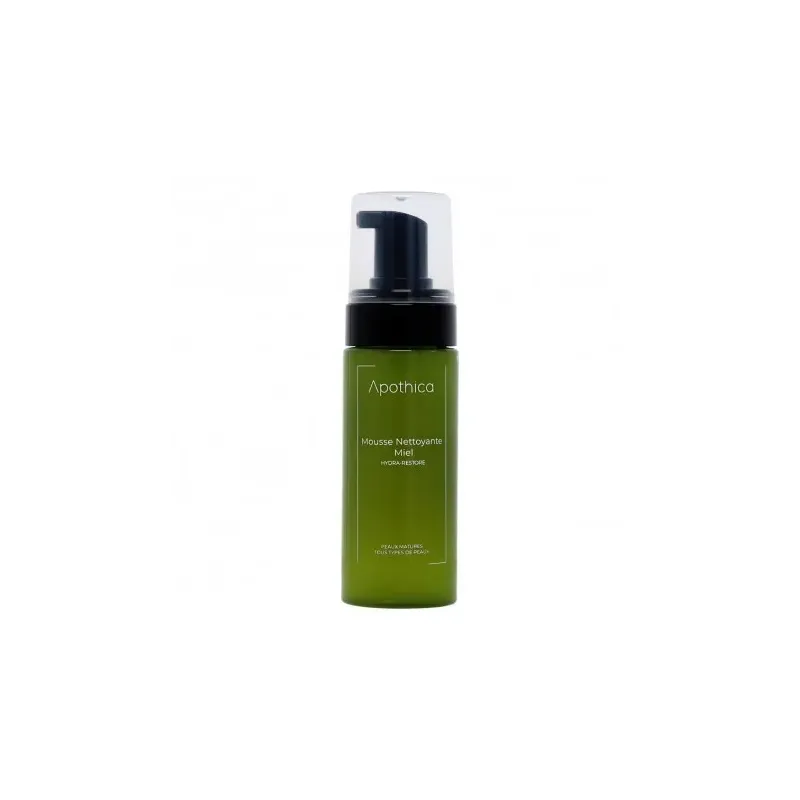 La Mousse Nettoyante Miel HYDRA RESTORE d'APOTHICA est un soin nettoyant pour le visage à la texture légère et onctueuse, spécialement formulé pour nettoyer en profondeur tout en apportant une action hydratante et lissante. Enrichie en ingrédients naturels puissants comme le Miel d'Eucalyptus Sauvage, le Collagène et la Vitamine E, cette mousse purifie la peau et élimine les impuretés et l'excès de sébum, tout en luttant contre les premiers signes de l'âge. Elle laisse la peau douce, lisse et nette sans perturber son équilibre naturel. Sa formule est équilibrée pour convenir à tous les types de peaux, y compris les peaux sensibles ou déshydratées.