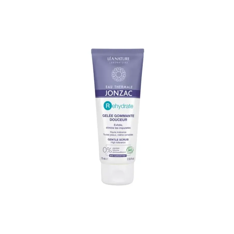La Jonzac Rehydrate Gelée Gommante Douceur 75ml est un exfoliant facial doux conçu pour les peaux déshydratées, normales à mixtes, y compris les peaux sensibles. Cette gelée, issue de la dermo-cosmétique bio, offre une exfoliation mécanique délicate mais efficace, permettant d'éliminer en douceur les cellules mortes, les impuretés et de désincruster les pores, tout en respectant la fragilité des peaux sensibles. Sa formule unique combine l'Eau Thermale de Jonzac, reconnue pour ses propriétés apaisantes et régénérantes, avec de la glycérine végétale et des particules exfoliantes 100% naturelles et biodégradables (souvent des graines de jojoba ou de cellulose) pour laisser la peau incroyablement douce, lisse et lumineuse.