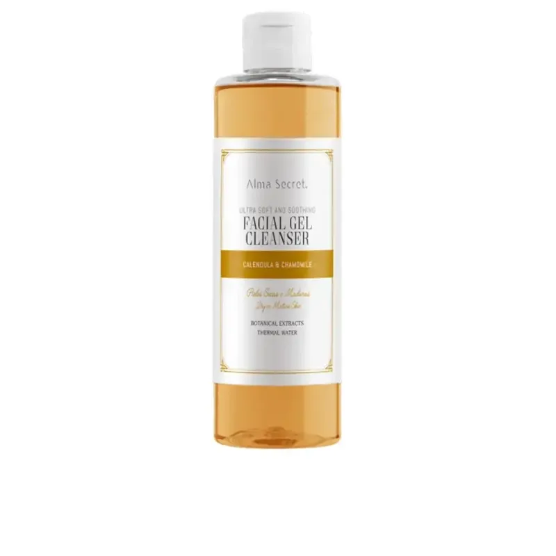L'ALMA SECRET GEL NETTOYANT DOUX CALENDULA CAMOMILLE est un soin d'hygiène quotidienne présenté dans un flacon de 200 ml. Ce gel est spécifiquement formulé pour le nettoyage du visage et des yeux. Il utilise une base lavante extrêmement douce pour éliminer efficacement les impuretés, l'excès de sébum et les résidus de maquillage, tout en respectant l'équilibre naturel de la peau. Le cœur de sa formule réside dans l'alliance de la Camomille et du Calendula, deux extraits botaniques reconnus pour leurs puissantes propriétés apaisantes et anti-inflammatoires. Il est idéal pour les peaux sensibles, réactives ou celles qui sont sujettes aux rougeurs.
