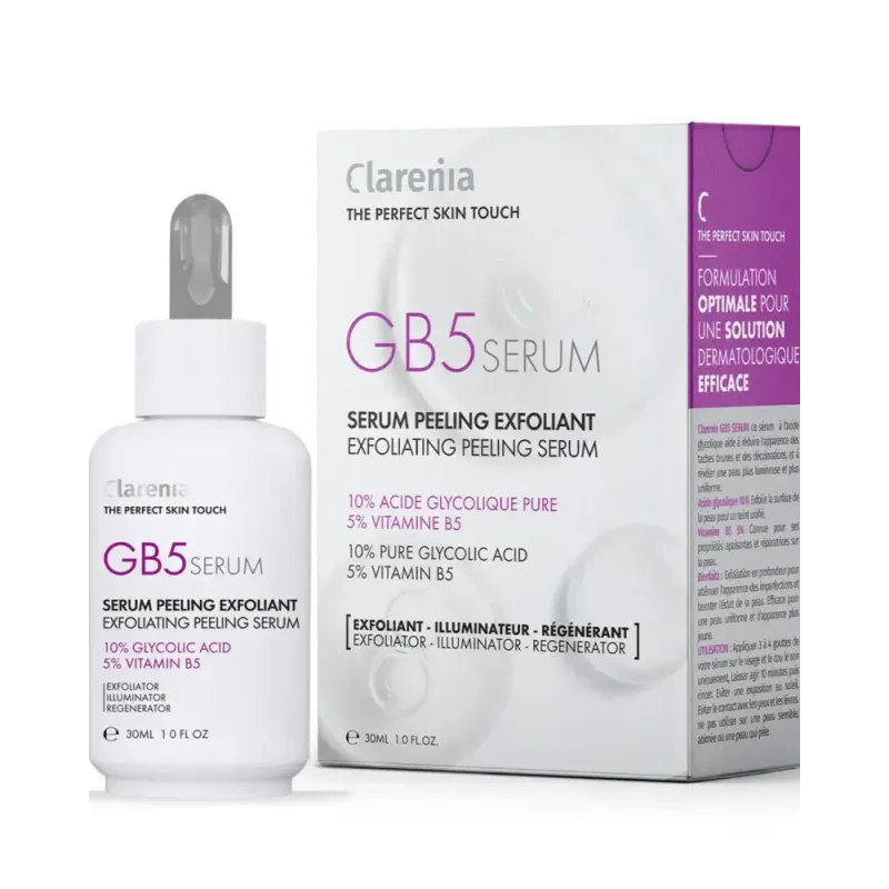 Le Sérum Peeling Exfoliant GB5 Clarenia est un soin de nuit hautement concentré, formulé pour transformer l'apparence de la peau. Ce peeling exfoliant doux mais efficace combine les bénéfices d'un AHA (Acide Glycolique) et d'un BHA (Acide Salicylique) pour exfolier la peau en surface et en profondeur. Il agit pour éliminer les cellules mortes, désobstruer les pores, lisser le grain de peau et estomper les imperfections. Utilisé régulièrement, il révèle un teint plus lumineux, uniforme et une peau visiblement plus saine et plus douce au toucher.