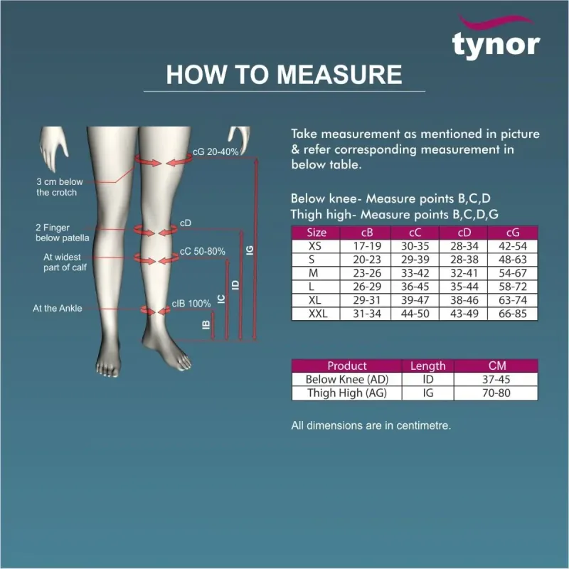 Mesure : Une mesure précise du tour de cheville, du mollet, et du haut de la jambe est obligatoire pour assurer l'efficacité de la compression et éviter tout risque de garrot.