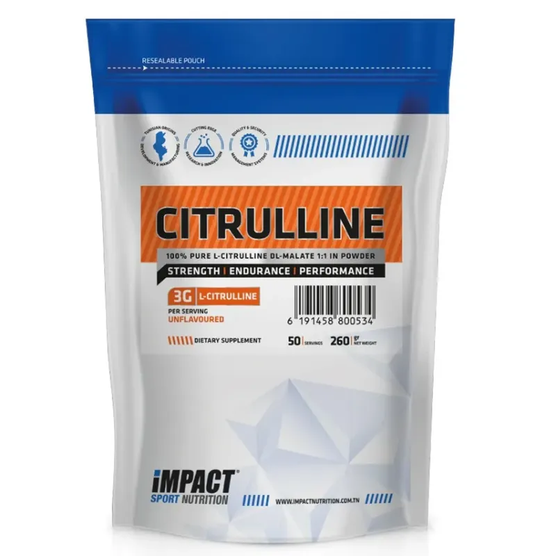 L'Impact Citrulline est un complément alimentaire conçu pour maximiser les performances physiques, l'endurance et la "pompe" musculaire. La Citrulline est un acide aminé précurseur de l'Arginine, qui est elle-même convertie en Oxyde Nitrique (NO) dans le corps. L'augmentation du NO induit une vasodilatation (élargissement des vaisseaux sanguins), ce qui se traduit par un meilleur flux sanguin vers les muscles actifs. Cela permet d'augmenter l'apport en oxygène et en nutriments tout en facilitant l'élimination de l'ammoniaque (déchet métabolique qui cause la fatigue), conduisant à une endurance accrue, une diminution de la fatigue musculaire et des congestions plus intenses.