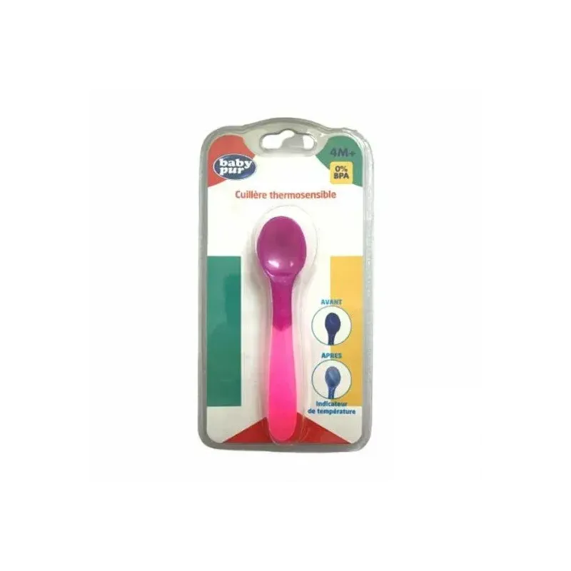 La BABY PUR CUILLÈRE THERMOSENSIBLE est un ustensile de sevrage essentiel, spécialement conçue pour les bébés à partir de 4 mois et plus. L'innovation principale de cette cuillère réside dans sa propriété thermosensible : elle change de couleur lorsque les aliments sont trop chauds (généralement au-dessus de 40°C ou 43°C), agissant comme un indicateur de sécurité immédiat pour prévenir les brûlures de la bouche et des gencives du bébé. Fabriquée avec des matériaux doux et sans danger, sa forme est ergonomique pour la petite bouche de l'enfant et facile à manipuler par les parents.