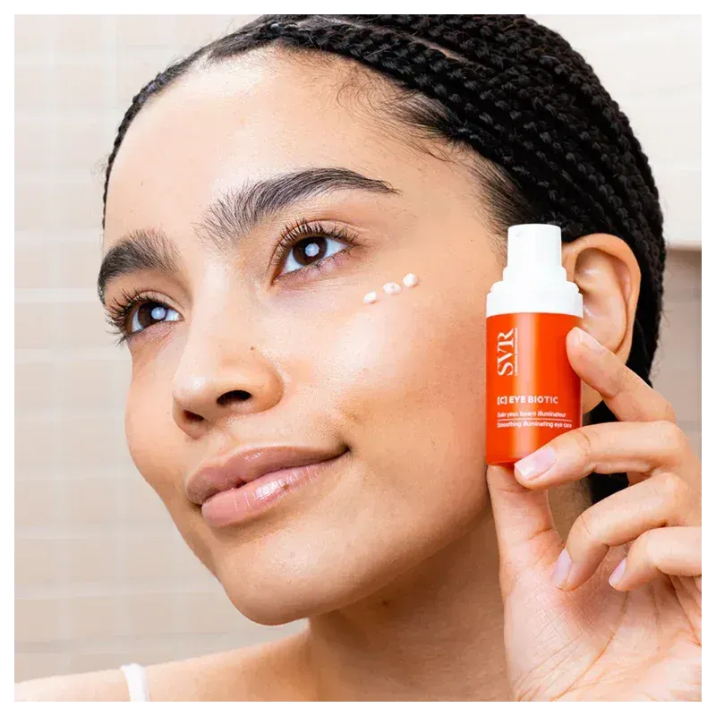 Le soin yeux SVR C Eye Biotic est spécifiquement formulé pour la zone fragile du contour des yeux, ciblant les signes de fatigue, les cernes, les poches et les rides. Ce soin intègre le cœur de formule BIOTIC de SVR, associant des actifs régénérants et illuminateurs puissants. Sa texture légère et fondante pénètre rapidement, apportant un effet lissant immédiat et une hydratation durable. Jour après jour, le regard paraît plus reposé, les rides sont atténuées et le contour de l'œil retrouve fermeté et éclat.