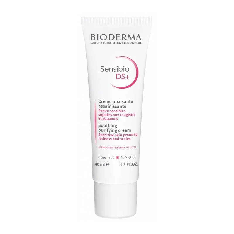 BIODERMA SENSIBIO DS+ CRÈME 40ML est un soin dermatologique apaisant et purifiant, spécifiquement formulé pour les peaux sensibles sujettes aux rougeurs, squames et irritations, notamment au niveau des zones séborrhéiques du visage (ailes du nez, sourcils, front) et du cou. Elle agit en profondeur pour lutter contre les facteurs responsables de ces irritations (prolifération de Malassezia) tout en restaurant le confort cutané.