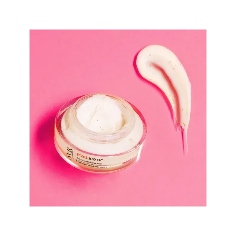 La crème régénérante éclat C20 Biotic de SVR est un soin quotidien conçu pour régénérer la peau, corriger les signes de fatigue et unifier le teint. Sa formule unique, concentrée en actifs dermatologiques, combine la puissance de la vitamine C optimisée à celle de trois actifs clés pour l'équilibre cutané. La vitamine C optimisée à 20% est un puissant antioxydant qui agit sur l'éclat du teint et protège la peau du vieillissement prématuré. Le complexe probiotique aide à renforcer la barrière cutanée, l'acide hyaluronique repulpe la peau et l'hydrate en profondeur, tandis que le complexe d'huiles végétales nourrit et assouplit l'épiderme. Sa texture baume, enrichie en micro-nacres, fond sur la peau et illumine instantanément le teint sans laisser de film gras. Jour après jour, la peau est plus lisse, plus ferme et plus lumineuse, comme revitalisée.