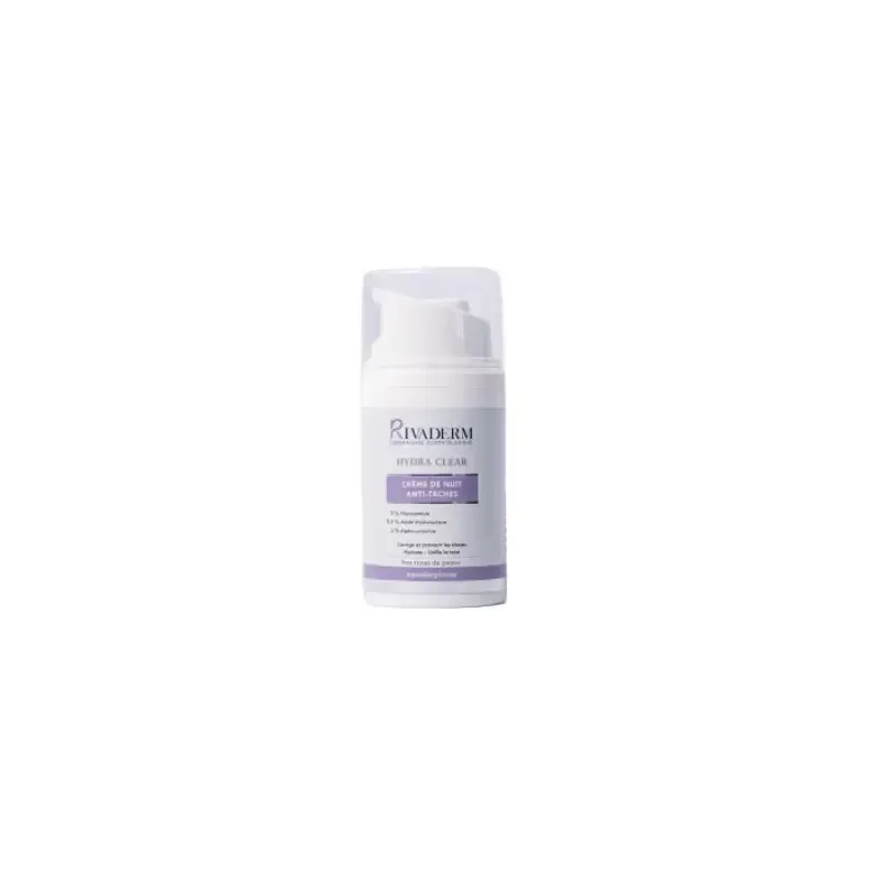 La crème Hydra Clear Anti-taches de Rivaderm est un soin correcteur et protecteur conçu pour unifier le teint et réduire les irrégularités pigmentaires. Sa formule avancée agit à la fois sur l'hydratation de la peau et sur la régulation de la mélanine pour atténuer les taches brunes existantes (dues au soleil, à l'âge ou aux cicatrices d'acné). Ce soin aide à clarifier le teint tout en apportant le confort nécessaire aux peaux sèches ou déshydratées, offrant ainsi une peau plus homogène, lumineuse et parfaitement hydratée.