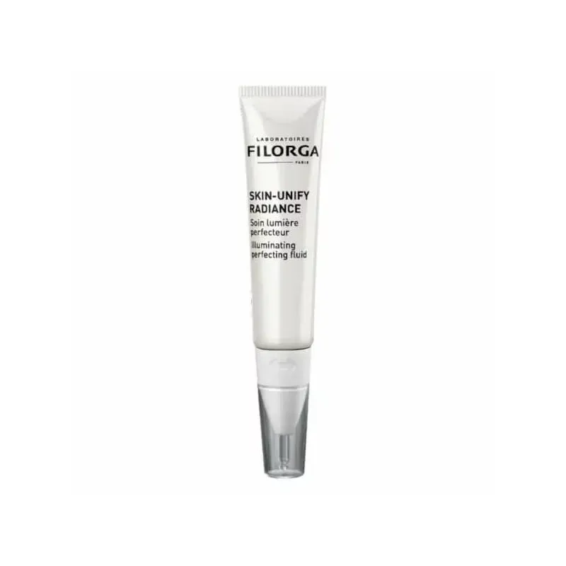 La FILORGA SKIN-UNIFY RADIANCE 15ML est un soin lumière perfecteur qui unifie le teint et apporte un éclat instantané et subtil. Ce produit de 15 ml est un hybride entre un soin et un enlumineur, directement inspiré de trois techniques de médecine esthétique : le laser, le peeling et le "medical strobing" (une technique qui recrée les zones de lumière du visage). Sa formule contient des actifs uniformisants comme la vitamine C, la glabridine et un extrait d'algue, qui agissent en synergie pour réduire visiblement les taches pigmentaires et homogénéiser le teint. Un actif resurfaçant d'origine végétale complète cette action en favorisant le renouvellement cellulaire pour une peau plus lisse et un grain de peau affiné. Pour un éclat immédiat, le soin est infusé de nacres iridescentes finement choisies qui réfléchissent la lumière et fondent sur la peau, créant une aura lumineuse naturelle. De l'acide hyaluronique repulpant de haut poids moléculaire est également inclus pour mettre en valeur les zones clés du visage en optimisant la réflexion de la lumière. Sa texture fluide et légère est ultra-sensorielle, offrant un fini lumineux sans effet gras ou pailleté, idéal pour parfaire le teint et le sublimer au quotidien.