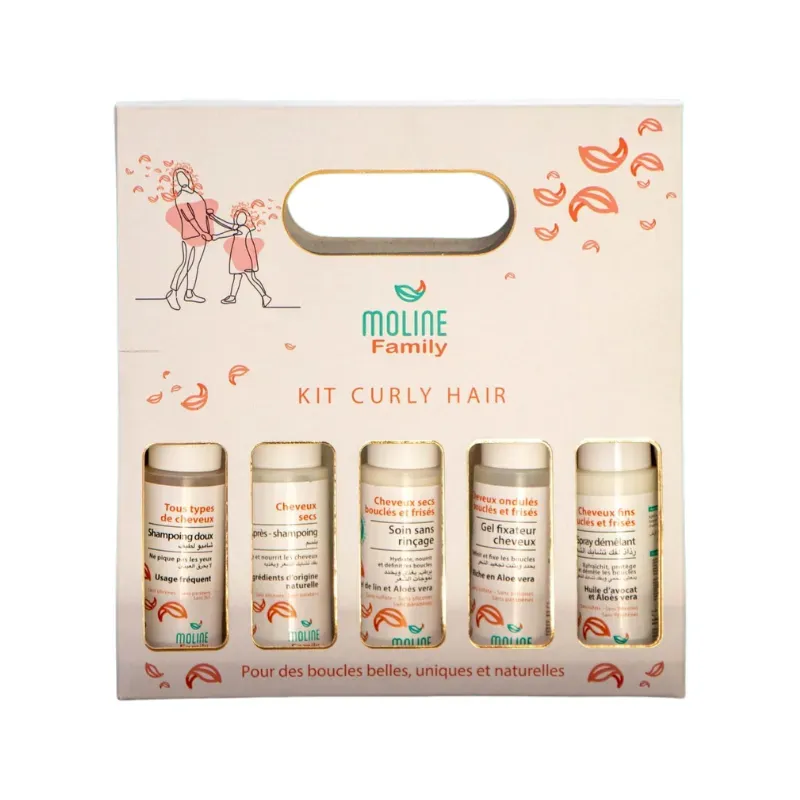 Le Kit Curly Hair de Moline est une solution complète et experte dédiée à la sublimation des cheveux texturés. Ce coffret regroupe les essentiels nécessaires pour nettoyer, traiter et styliser les boucles, les frisottis et les cheveux crépus. Sa formulation ciblée vise à restaurer l'équilibre hydrique de la fibre capillaire, souvent naturellement sèche, afin de transformer la chevelure en une cascade de boucles souples, brillantes et parfaitement dessinées, sans effet de lourdeur.