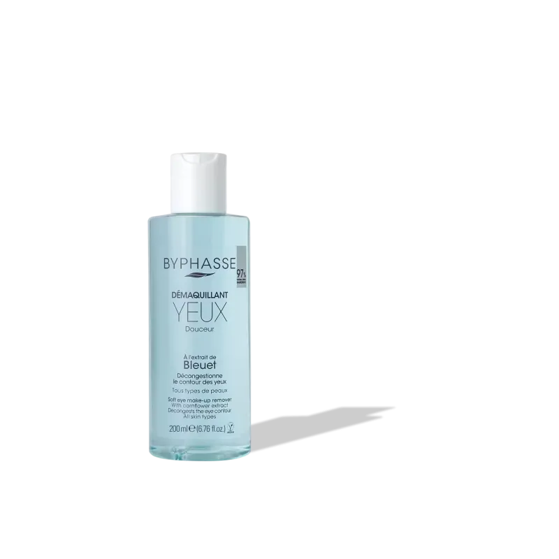 Le démaquillant yeux douceur à l'extrait de bleuet de Byphasse est un soin spécialement conçu pour les yeux et les peaux sensibles. Sa formule douce et non grasse dissout et élimine efficacement le maquillage des yeux, même waterproof, sans agresser la zone délicate du contour de l'œil. L'extrait de bleuet, ingrédient phare de ce démaquillant, est reconnu pour ses propriétés apaisantes et décongestionnantes qui aident à réduire les irritations et les sensations de fatigue. Ce démaquillant laisse la peau propre, fraîche et apaisée, tout en respectant l'équilibre naturel de l'épiderme. C'est la solution idéale pour un démaquillage efficace et un soin tout en douceur pour les yeux.