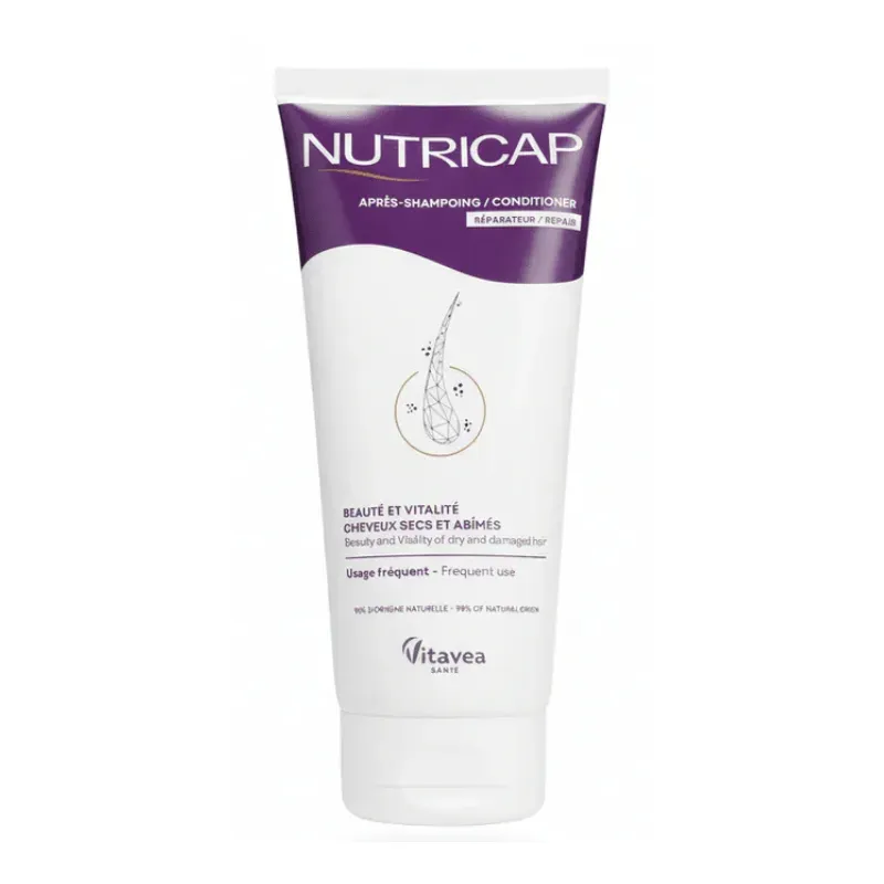 L'APRÈS-SHAMPOOING RÉPARATEUR NUTRICAP est un soin démêlant et nutritif de haute performance, conçu pour compléter l'action du shampooing sur les cheveux secs, cassants et profondément abîmés. Sa formule riche et fondante agit instantanément pour lisser les écailles de la fibre capillaire et restaurer sa barrière protectrice naturelle. Grâce à ses actifs relipidants, il redonne souplesse et éclat aux chevelures dévitalisées tout en facilitant un coiffage sans casse, laissant les cheveux incroyablement doux, légers et soyeux. 🌿