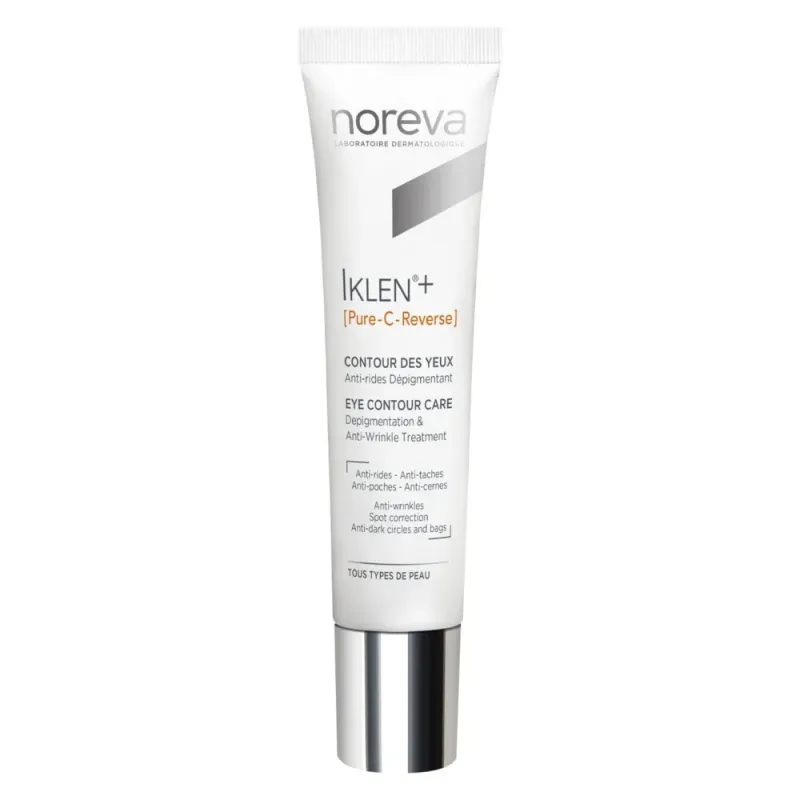 Le NOREVA IKLEN+ PURE C REVERSE CONTOUR DES YEUX 15ML est un soin innovant conçu spécifiquement pour la zone délicate du contour des yeux. Il s'inscrit dans la gamme IKLEN+, axée sur le traitement des taches pigmentaires et des signes de l'âge. Ce soin combine une puissante action dépigmentante, anti-rides et hydratante grâce à son complexe Pure-C-Reverse. Il cible les cernes, les poches, les rides et ridules, ainsi que les éventuelles taches brunes pour un regard frais, lumineux et visiblement rajeuni. Sa texture est légère, rapidement absorbée et instantanément hydratante.