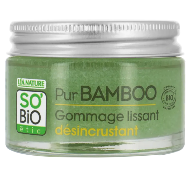 Gommage visage bio à la poudre de bambou et au citron, purifiant et lissant pour affiner le grain des peaux mixtes à grasses.