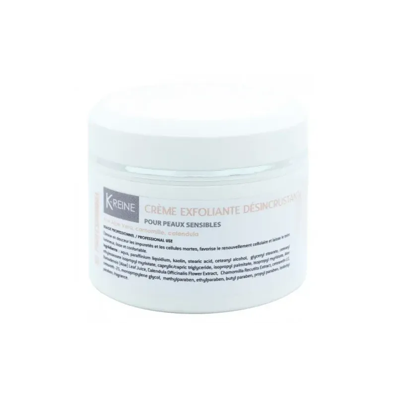 La K-REINE Crème Exfoliante Désincrustante 150 ML est un soin visage purifiant et lissant, conçu pour nettoyer la peau en profondeur, éliminer les impuretés et les cellules mortes, et désincruster les pores. Présentée dans un pot généreux de 150ml, cette crème offre une exfoliation mécanique efficace pour retrouver un teint frais, lumineux et un grain de peau visiblement affiné.